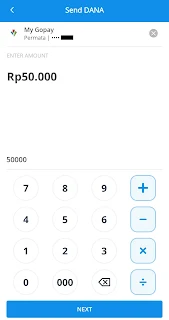 5. Masukkan jumlah uang yang mau kalian transfer, minimun 50.000 rupiah, kemudian klik Next.